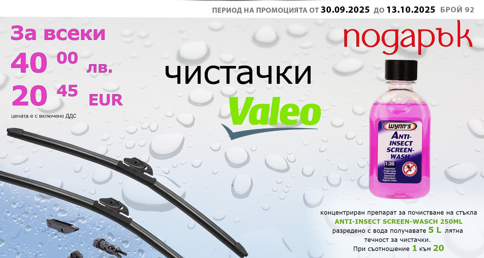 ЗА ВСЕКИ 40.00 лв. / 20.45 EUR с ддс ОБОРОТ ОТ ЧИСТАЧКИ VALEO = ПОДАРЪК ANTI-INSECT SCREEN-WASH 250ML